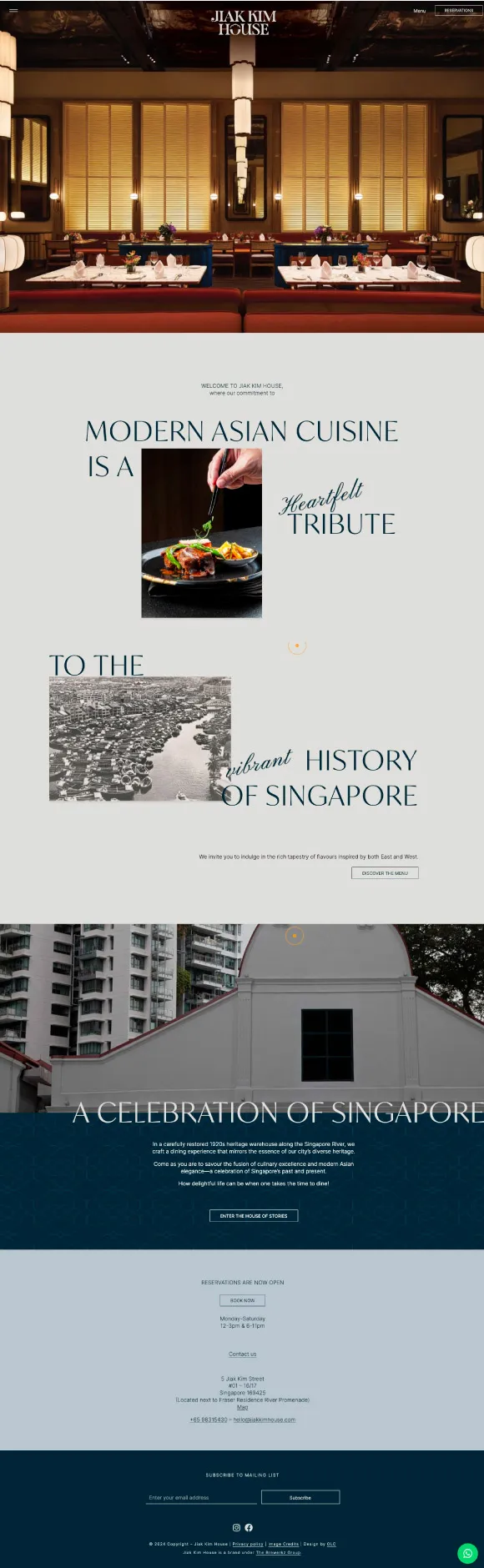 Welcome to Jiak Kim House, a Modern Asian Cuisine restaurant on the iconic Jiak Kim Street, Singapore. We are proud to have developed their website and been a part of their journey up to the grand opening of the restaurant. We wish them tremendous success.